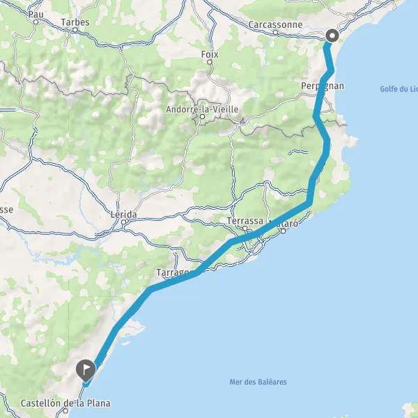 Prendre à droite et rejoindre A9 E15 E80. Continuer sur 91 kilomètres