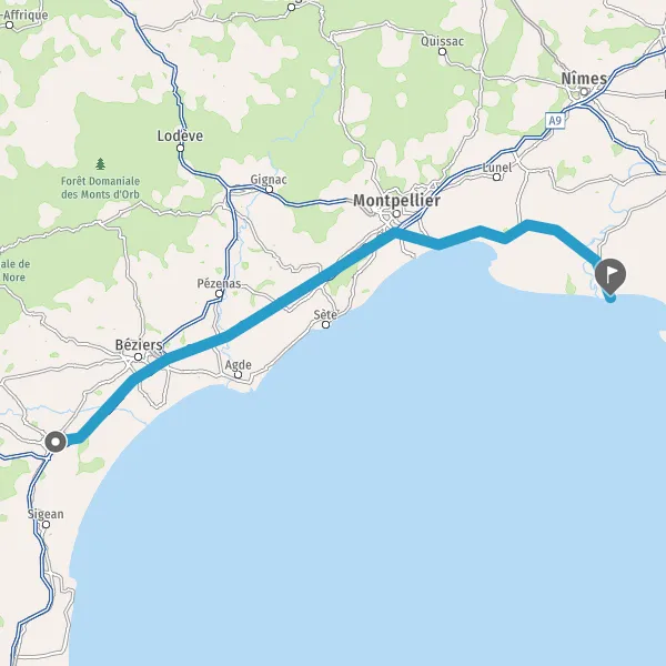 Continuer et rejoindre A9 E80 E15. Continuer sur 80 kilomètres