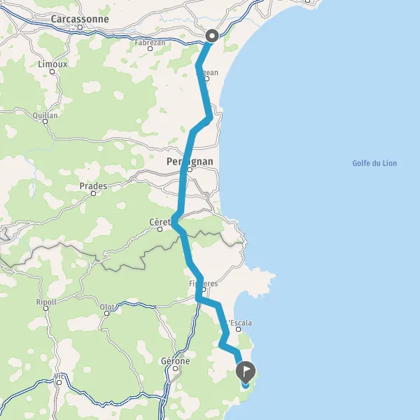 Prendre à droite et rejoindre A9 E15 E80. Continuer sur 91 kilomètres
