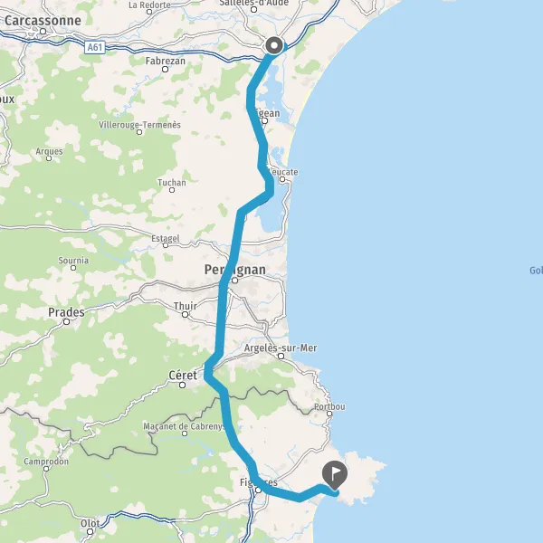 Prendre à droite et rejoindre A9 E15 E80. Continuer sur 91 kilomètres