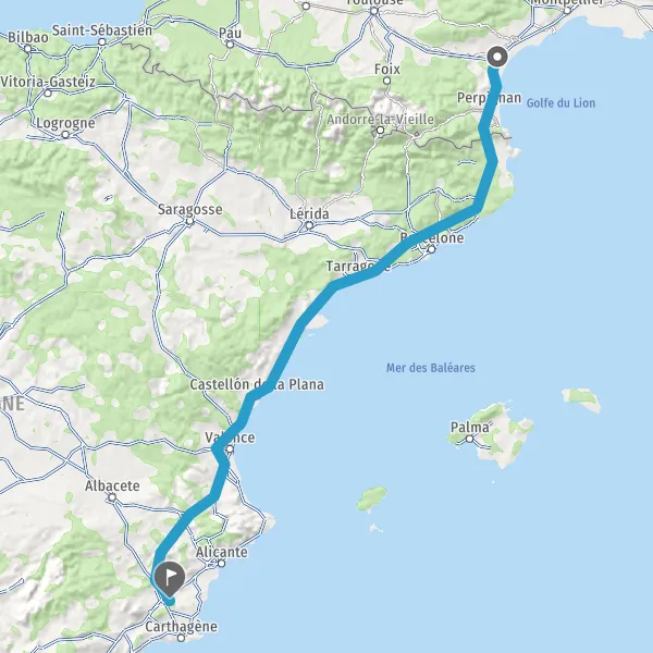 Prendre à droite et rejoindre A9 E15 E80. Continuer sur 91 kilomètres