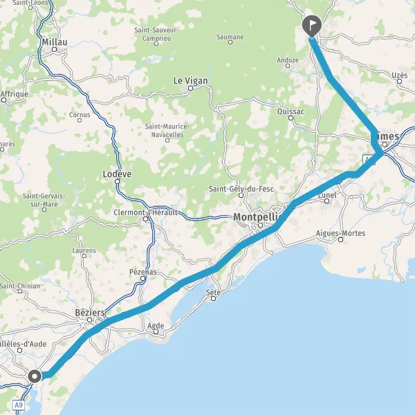 Continuer et rejoindre A9 E80 E15. Continuer sur 133 kilomètres