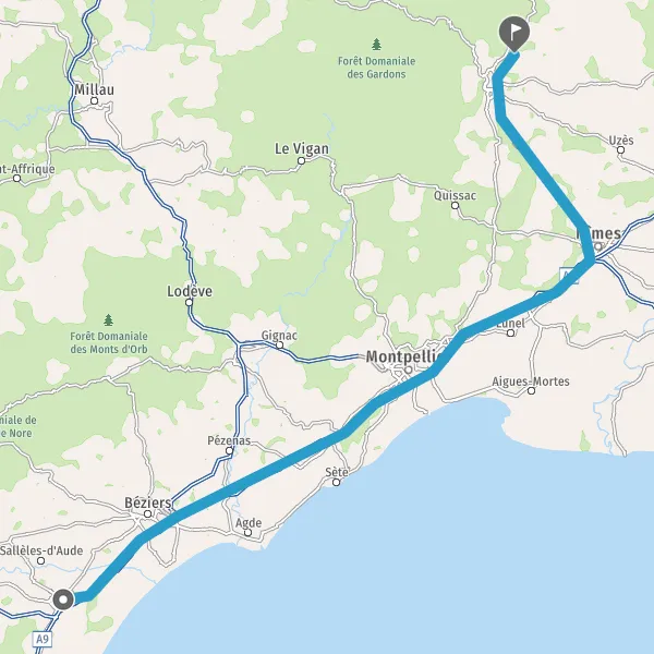 Continuer et rejoindre A9 E80 E15. Continuer sur 80 kilomètres