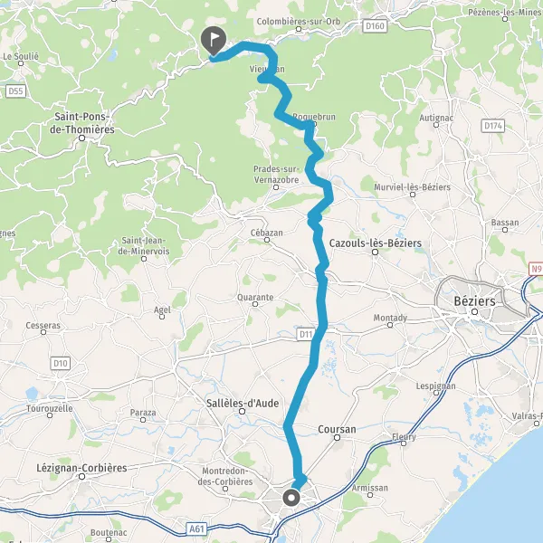 Au rond-point, prendre la 1ère sortie sur D413 (Route de Capestang) et continuer sur 2,1 kilomètres