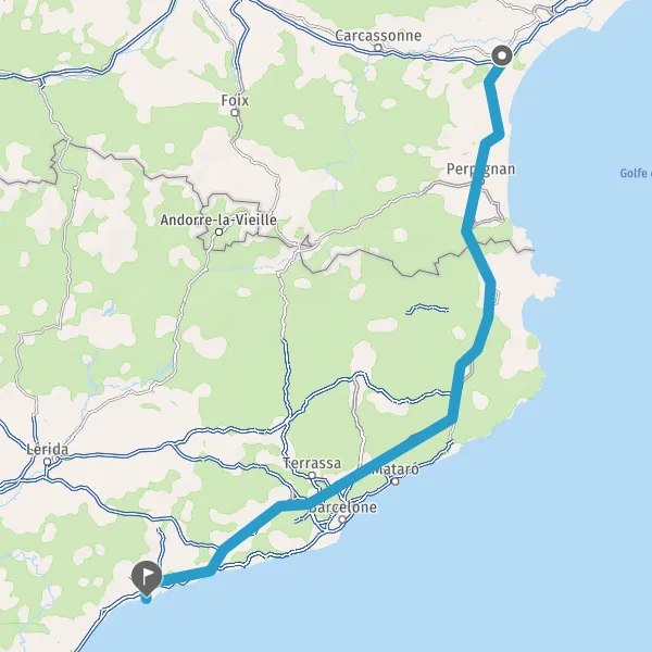 Prendre à droite et rejoindre A9 E15 E80. Continuer sur 91 kilomètres