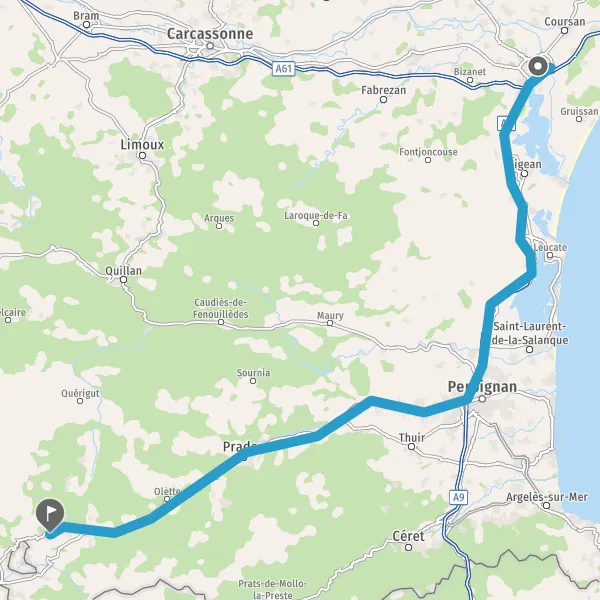 Prendre à droite et rejoindre A9 E15 E80. Continuer sur 52 kilomètres