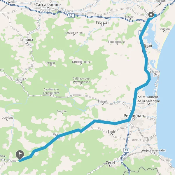 Prendre à droite et rejoindre A9 E15 E80. Continuer sur 52 kilomètres