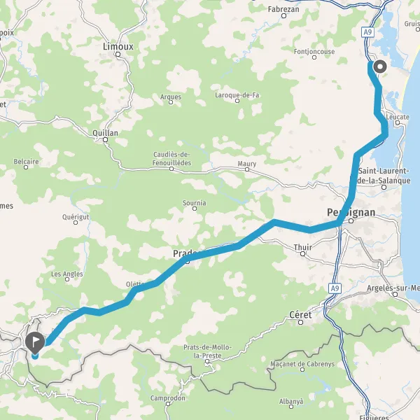 Continuer et rejoindre A9 E15. Continuer sur 33 kilomètres
