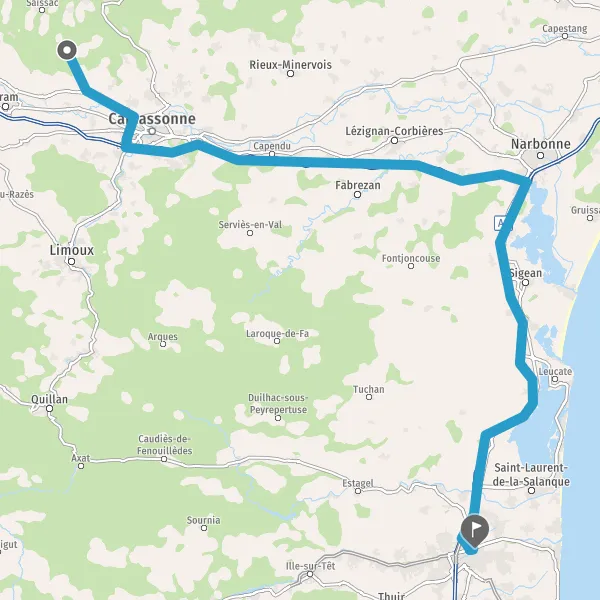 Au rond-point, prendre la 2ème sortie sur D629 (Route de Carcassonne) et continuer sur 2,7 kilomètres