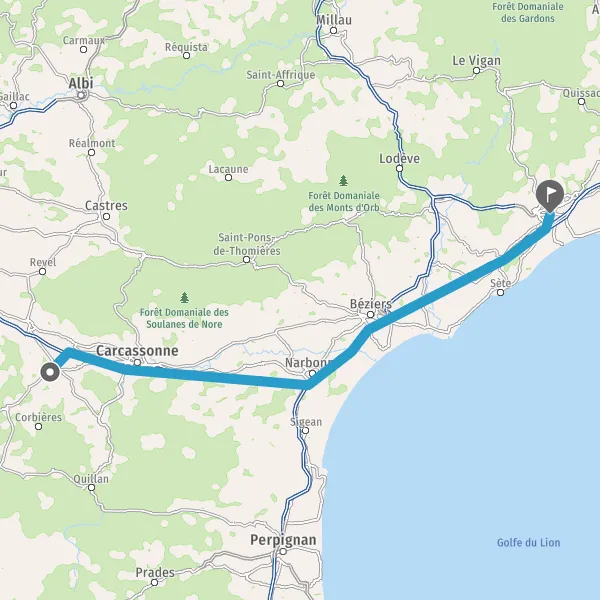 Continuer et rejoindre A9 E15 E80. Continuer sur 84 kilomètres