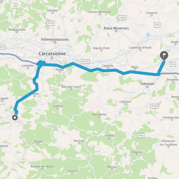 Au rond-point, prendre la 2ème sortie sur D611 (Route de Fabrezan) et continuer sur 900 mètres