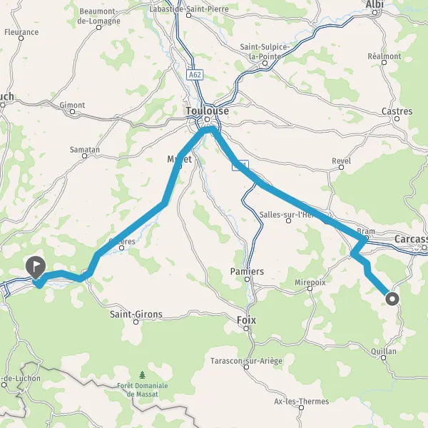 Prendre à droite et rejoindre A61 E80. Continuer sur 60 kilomètres