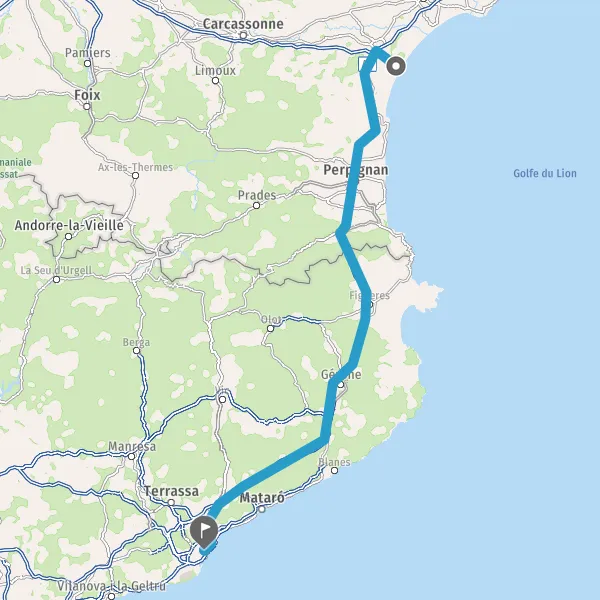 Prendre à droite et rejoindre A9 E15 E80. Continuer sur 88 kilomètres