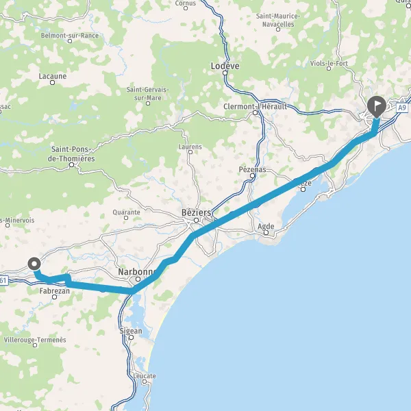 Continuer et rejoindre A9 E15 E80. Continuer sur 58 kilomètres