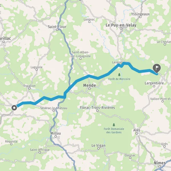 Tourner à droite sur N102 (Route d'Aubenas) et continuer sur 13 kilomètres