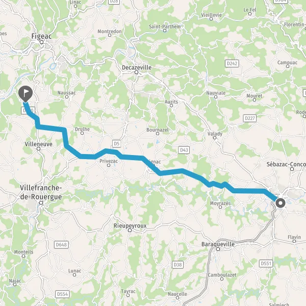 Tourner légèrement à droite sur D1 (Avenue du Rouergue) et continuer sur 2,7 kilomètres