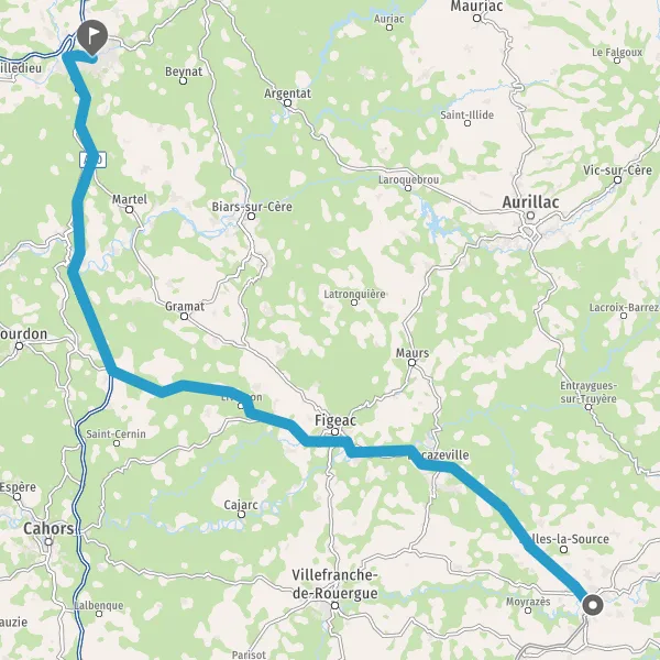 Au rond-point, prendre la 2ème sortie sur D840 (Route de Decazeville) et continuer sur 7,2 kilomètres