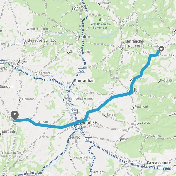 Prendre à droite et rejoindre A62. Continuer sur 4,8 kilomètres