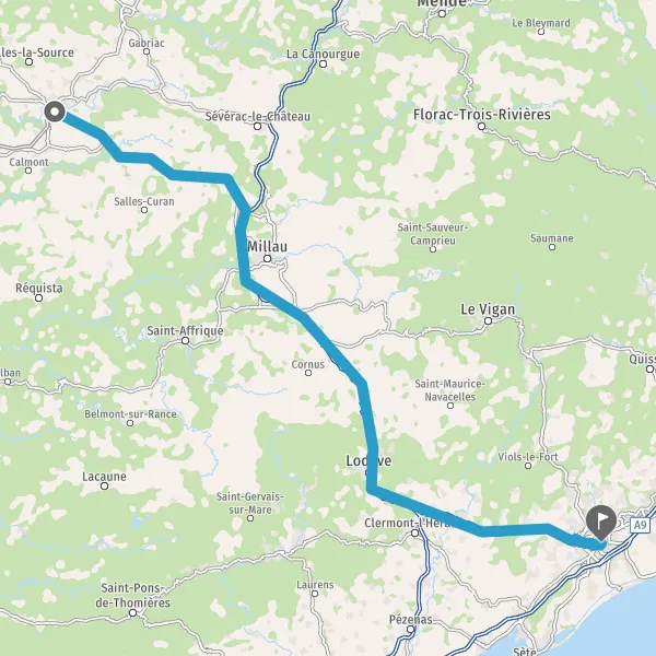 Au rond-point, prendre la 3ème sortie sur Route de Lodève et continuer sur 400 mètres