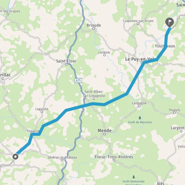 Tourner légèrement à gauche sur D987 (Place du Foirail) et continuer sur 22 kilomètres