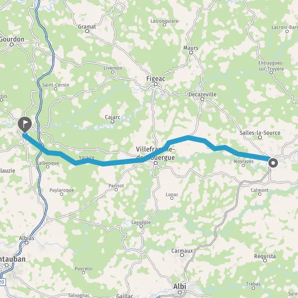 Tourner légèrement à droite sur D1 (Avenue du Rouergue) et continuer sur 2,7 kilomètres