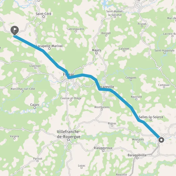Au rond-point, prendre la 2ème sortie sur D840 (Route de Decazeville) et continuer sur 7,2 kilomètres