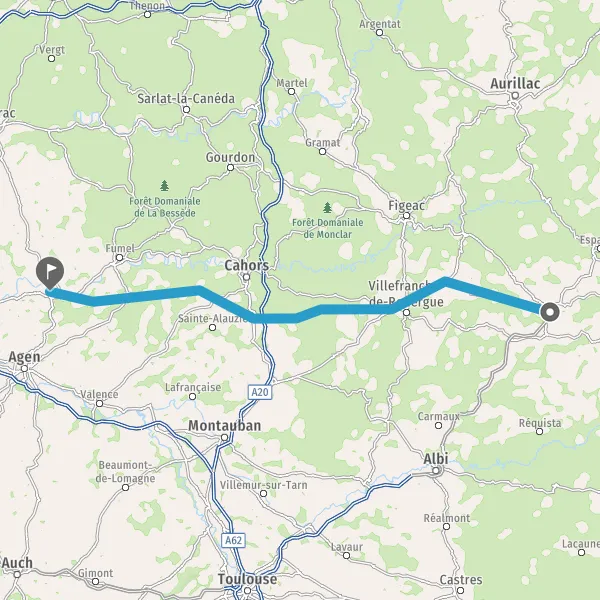 Tourner légèrement à droite sur D1 (Avenue du Rouergue) et continuer sur 2,7 kilomètres