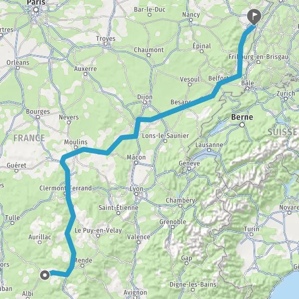 Prendre à droite et rejoindre A36. Continuer sur 225 kilomètres