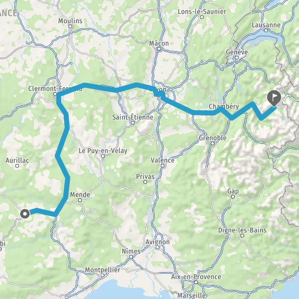 Prendre à droite et rejoindre A43 E70. Continuer sur 19 kilomètres
