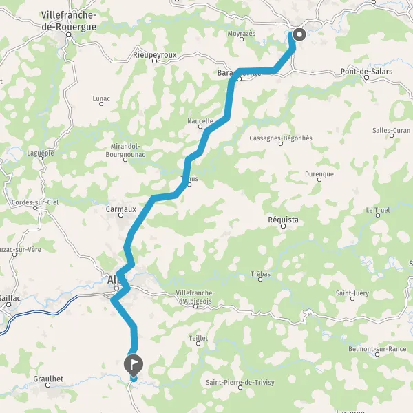 Au rond-point, prendre la 3ème sortie sur N88 (Route d'Albi) et continuer sur 2,1 kilomètres