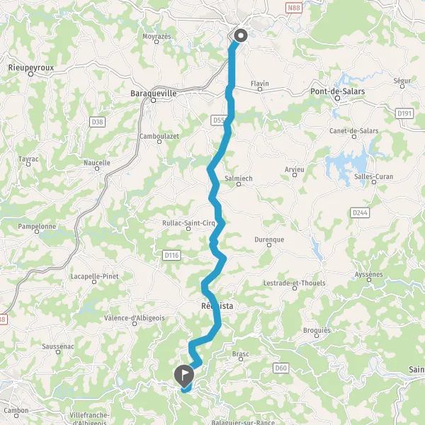 Tourner légèrement à droite sur D902 (Route de Requista) et continuer sur 9,6 kilomètres