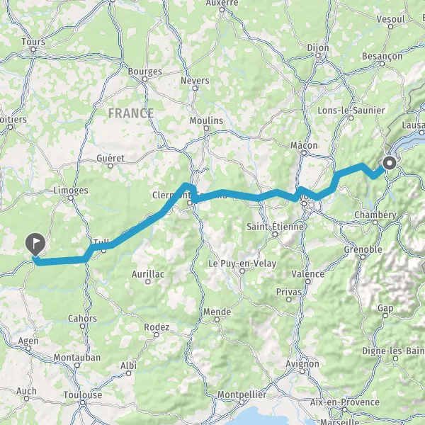 Prendre à droite et rejoindre A89 E70. Continuer sur 161 kilomètres