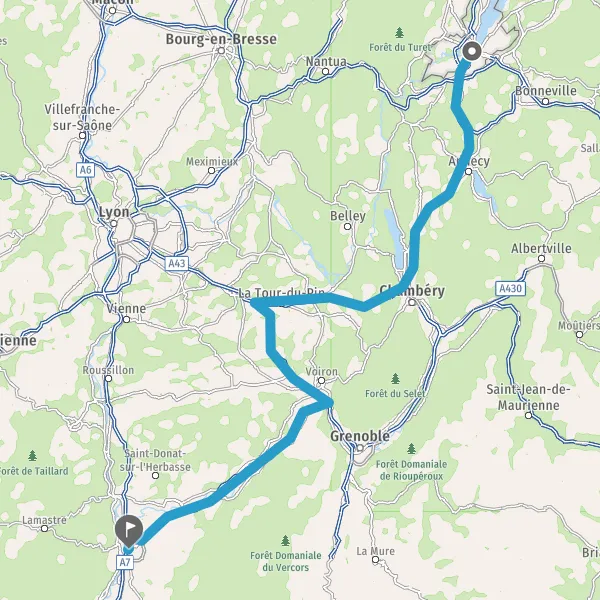 Prendre à droite et rejoindre A49. Continuer sur 71 kilomètres