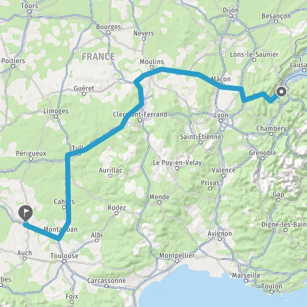 Prendre à droite et rejoindre A89 E70. Continuer sur 161 kilomètres