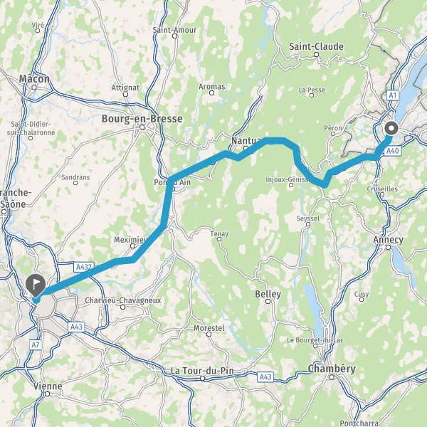 Prendre à droite et rejoindre A42 E611. Continuer sur 49 kilomètres