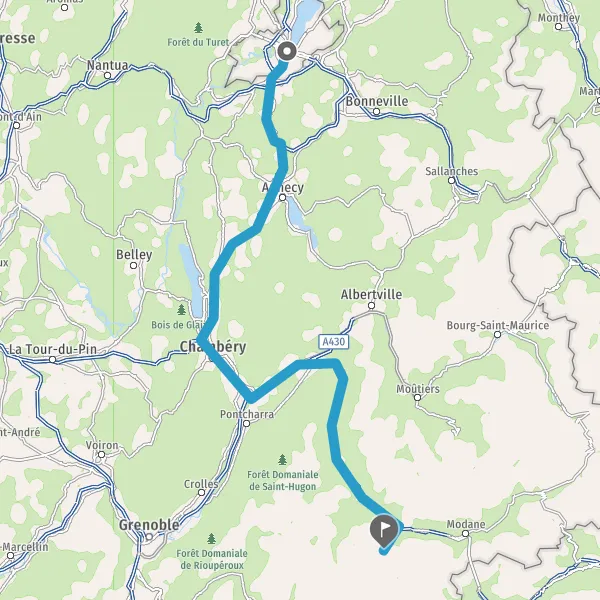 Prendre à droite et rejoindre A43 E70. Continuer sur 51 kilomètres