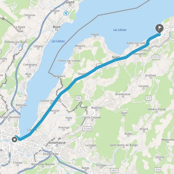 Au rond-point, prendre la 2ème sortie sur Route de Thonon et continuer sur 1,8 kilomètre