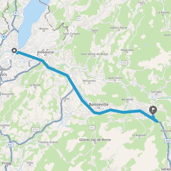Au rond-point, prendre la 3ème sortie sur Avenue du Mont Blanc et continuer sur 280 mètres