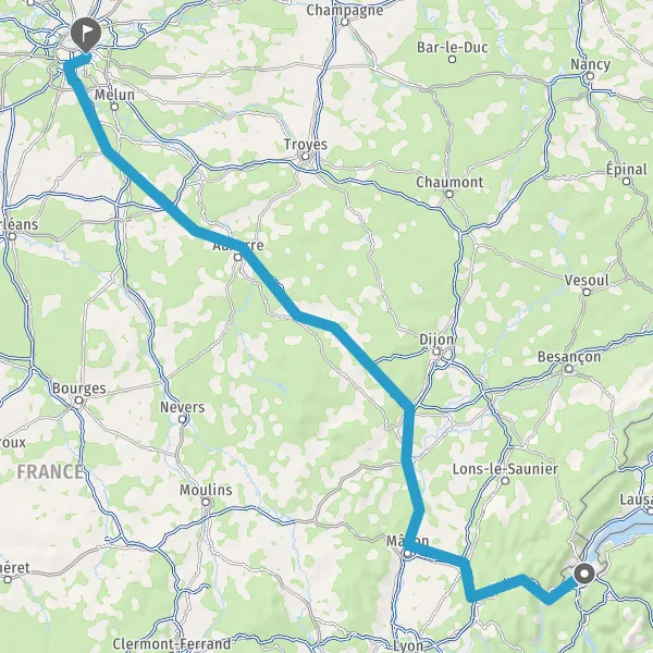Prendre à droite et rejoindre A6. Continuer sur 294 kilomètres