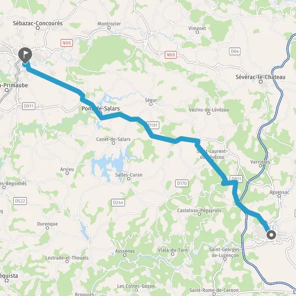 Au rond-point, prendre la 3ème sortie sur D911 (Avenue de Rodez) et continuer sur 450 mètres
