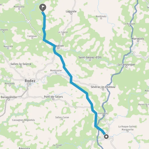 Tourner légèrement à droite sur D97 (Route de Saint-Amans) et continuer sur 11 kilomètres