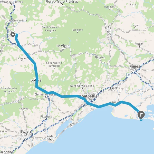 A9NîmesAlèsLyonMarseilleLa Grande-MotteMontpellierMéditerranée