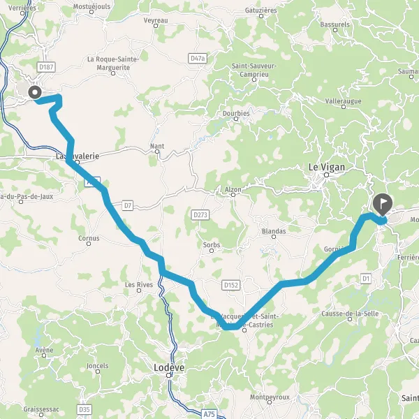 Au rond-point, prendre la 2ème sortie sur D25 (Route de Ganges) et continuer sur 1,6 kilomètre