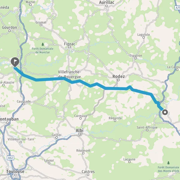 Route de Villefranche-de-Rouergue 72 km