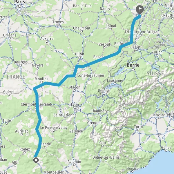 Prendre à droite et rejoindre A36. Continuer sur 225 kilomètres