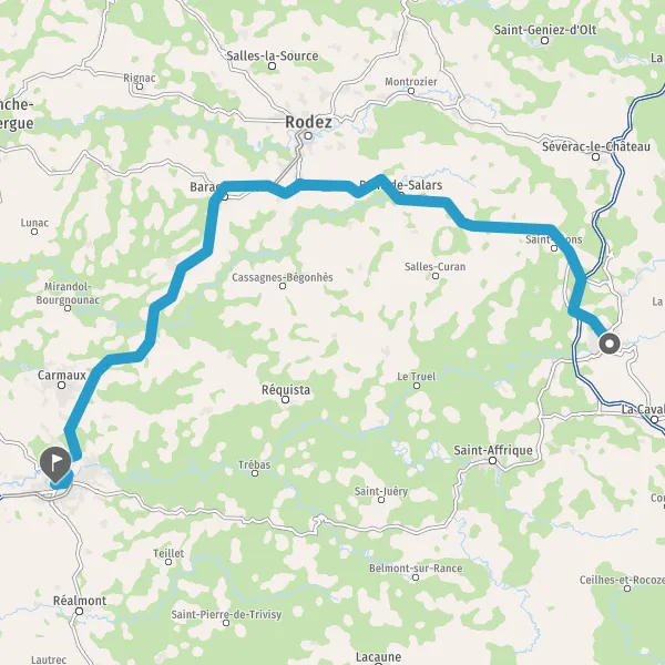 Prendre à droite et rejoindre N88. Continuer sur 50 kilomètres