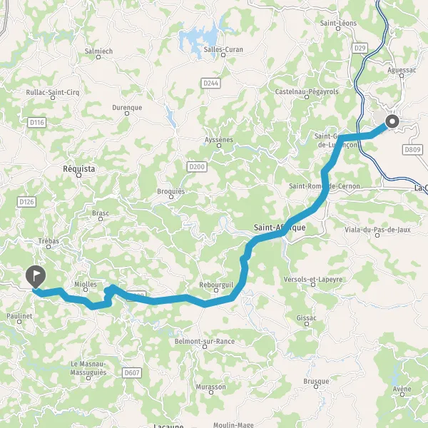 Au rond-point, prendre la 2ème sortie sur D992 (Avenue de Saint-Affrique) et continuer sur 4,2 kilomètres