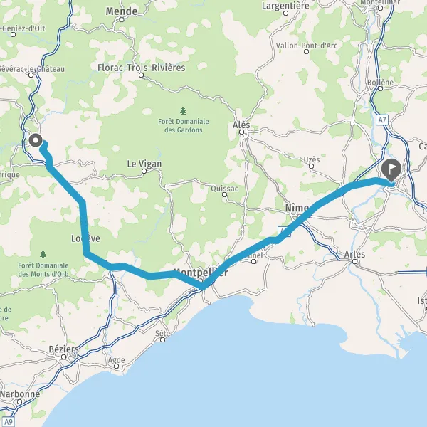 A9NîmesAlèsLyonMarseilleLa Grande-MotteMontpellierMéditerranée