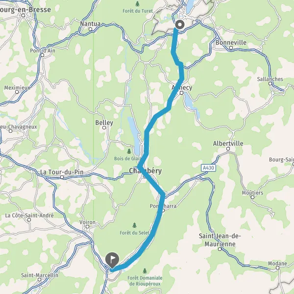 Continuer et rejoindre N201 E712 E70 (Avenue du Bourget-du-Lac). Continuer sur 16 kilomètres