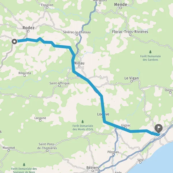 Au rond-point, prendre la 2ème sortie sur Avenue de Rodez et continuer sur 5,1 kilomètres